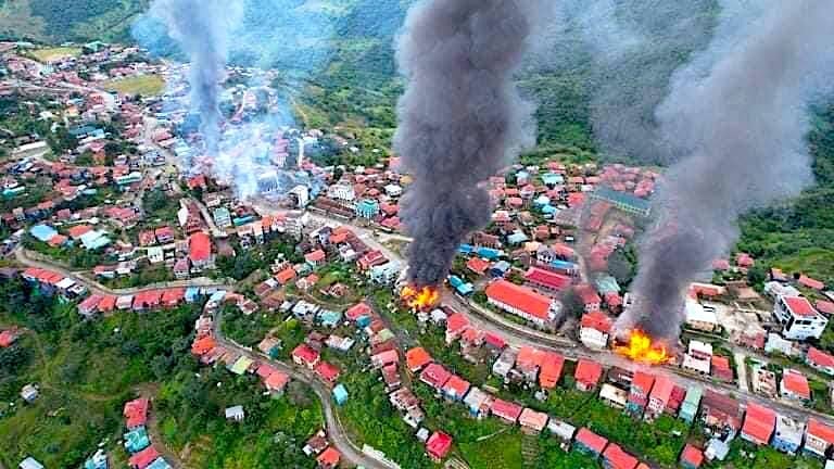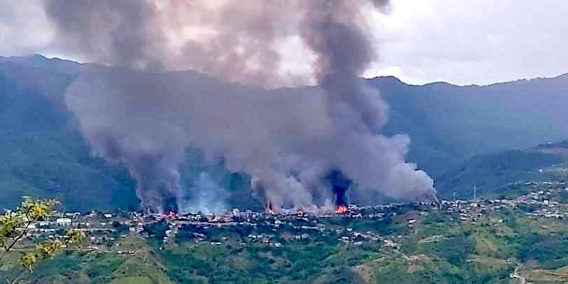 ချင်းပြည်နယ်၊ ထန်တလန်မြို့တွင် စစ်တပ်က လက်နက်ကြီးဖြင့် ပစ်ခတ်မှုကြောင့် မီးလောင်ကျွမ်းနေသည့် နေအိမ်များ ငြှိမ်းသတ်မည့်သူ မရှိသဖြင့် မီးကူးစက်မှုများ များပြားနေပြီး ယခုအချိန်အထိ လောင်ကျွမ်းနေဆဲဖြစ်ကြောင်း ဒေသခံများ၏ ပြောပြချက်အရ သိရသည်။